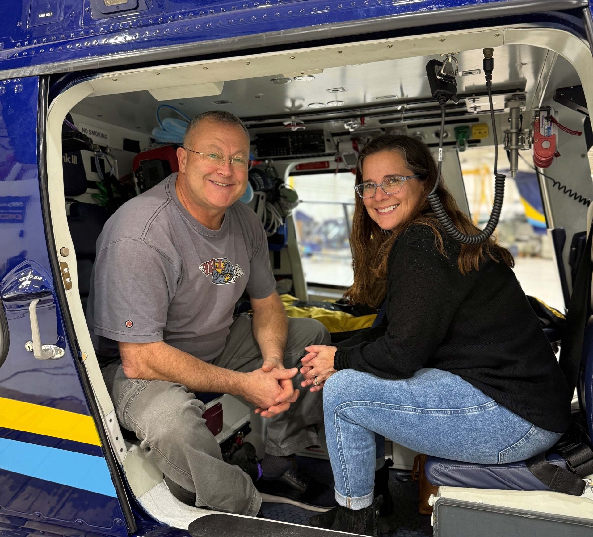 Nearly a year after her crash, on October 23, 2025, she and her husband visited the Life Link III base to meet the very clinicians who had cared for her. The moment was surreal, emotional, and unforgettable. Despite busy schedules, long on-call hours, and demanding shifts, the crew made a point to be there, to listen, to connect, and to see the remarkable recovery they helped make possible.